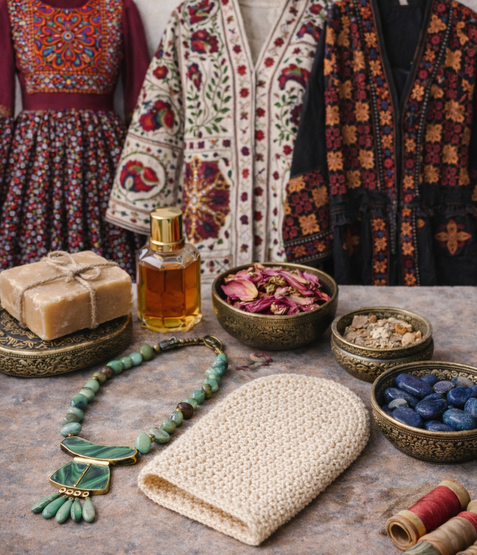 We also carry beauty products rooted in Eastern traditions, from botanical oils and skin rituals to hand crocheted bath products inspired by time-honored techniques.